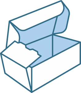 A RETT is a non-glued box that closes by rolling the sides and shutting the lid with a tuck top. This can be modified to close with cherry locks that tuck into the front of the box. Because it is not glued, there is more flexibility in the sizes that can be manufactured, but it also takes longer to assemble. A RETT has a quality open box experience as the end user lifts the lid away from them showing everything in the box easily. The open box experience paired with the ability to use this as a shipping box, makes it a very popular style for custom subscription boxes.