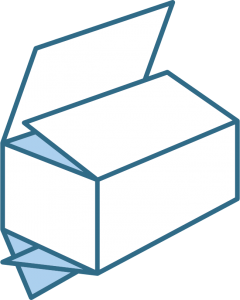 A FOL utilizes two overlapping tabs on the top and bottom of the box that are adhered together to shut. In corrugated material, this style is most commonly used for heavy products, or products with potential to puncture the box. The fully overlapping flaps give you the increased strength you may need to keep your product save. FOLs are often used for custom industrial packaging.
