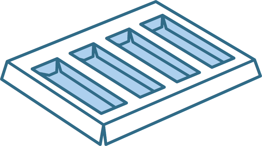 Thermoform trays are plastic trays that are vacuum heated and formed around a tool to create cavities inside the tray. These trays are best used in medical fields where clean packaging is imperative so the product is not contaminated with particles of material. The flexibility of plastic allows for much greater customization, but this creates a more complex tool that is usually more costly relative to other insert styles.