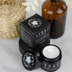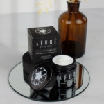 Our ultimate goal was to produce both the primary and secondary packaging that reflects the concept of simple, natural beauty. The primary packaging consists of jars made of ultraviolet glass to protect the product from harmful UV rays. To elegantly contrast the glass jars, we screen-printed the Aforé logos in white on both the face and lids.