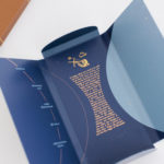 All of the custom envelopes were custom printed as one design to create brand consistency and save cost. The artwork was designed with two blue PMS colors. A gold foil stamp was used to embellish the artwork with a luster that contrasts beautifully off the matte blue color. The background of the artwork has gold stars and moons to give the appearance of a night sky. The sleeves were designed with unique artwork to differentiate each flavor.
