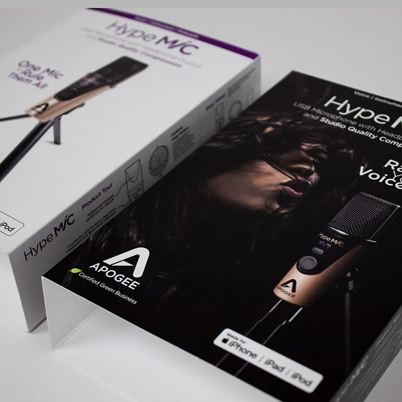 Sometimes when launching products or rebranding, you end up with more product SKUs and packaging then you need or know what to do with. Peek Packaging is here to help create a solution. For Apogee who has multiple versions of their Mic & Jam product lines that are similar in size, we created a universal packaging concept.