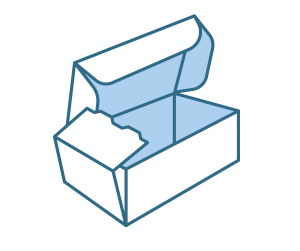 A RETT is a non-glued box that closes by rolling the sides in and closing the lid with a tuck top. This can be modified to close with cherry locks that tuck into the front of the box also. Because it is not glued, there is more flexibility in the sizes that can be manufactured, but may also take longer to assemble. A RETT has a quality open box experience as the end user lifts the lid away from them, nicely presenting what is inside.