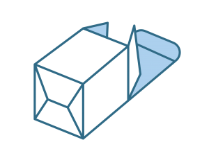 An RTE has tuck tabs on the reverse sides of the top and bottom edges of the box. This is typically the least costly style of box because the footprint allows us to nest boxes together and fit more up on a sheet in production. Either the top or bottom will have an exposed edge where the tuck tab closes. This style is very flexible in the sizes that can be manufactured and custom modifications that can be made.