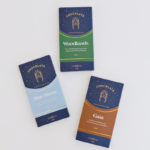 Each sleeve uses a different PMS color as the background, but they use the same gold foil stamp for a cohesive design that synergizes as a complete unit.