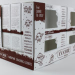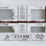 Cookie Babies came to us with a 3 pack product box that could use some improvements. We really liked their box style and graphics, especially the front panel which had a very large window allowing customers to get a very good look at the product. To enhance this look, our team modified the rectangular window to have custom shapes for their cookie baby characters to fit into. This helped bring their branding to life while drawing more attention to the product inside the window. Their logo was prominently displayed above the window. The minimal amount of additional content on the front panel keeps the attention on what matters: the product and the brand. One side panel had catchy phrases to describe their product, while the other side shared how the company started. The back panel had a large version of their logo with a call to action to get more information about Cookie Babies. The graphics effectively showed the many sides of their brand while not being too oversaturated with content.