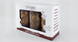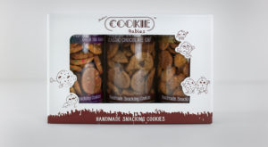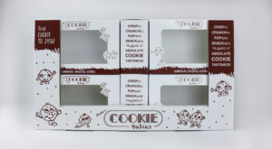 Cookie Babies came to us with a 3 pack product box that could use some improvements. We really liked their box style and graphics, especially the front panel which had a very large window allowing customers to get a very good look at the product. To enhance this look, our team modified the rectangular window to have custom shapes for their cookie baby characters to fit into. This helped bring their branding to life while drawing more attention to the product inside the window. Their logo was prominently displayed above the window. The minimal amount of additional content on the front panel keeps the attention on what matters: the product and the brand. One side panel had catchy phrases to describe their product, while the other side shared how the company started. The back panel had a large version of their logo with a call to action to get more information about Cookie Babies. The graphics effectively showed the many sides of their brand while not being too oversaturated with content.